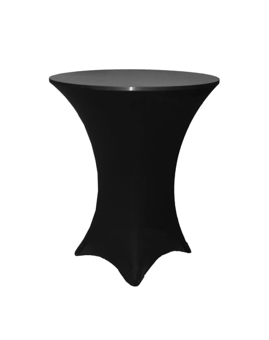 Black spandex linens designed for cocktail tables. These stretch-fit covers deliver a sleek, modern look that fits snugly over round and square cocktail tables. Lightweight. Durable. Wrinkle-resistant. Perfect for events, receptions, trade shows, and private parties. πΈβ¨