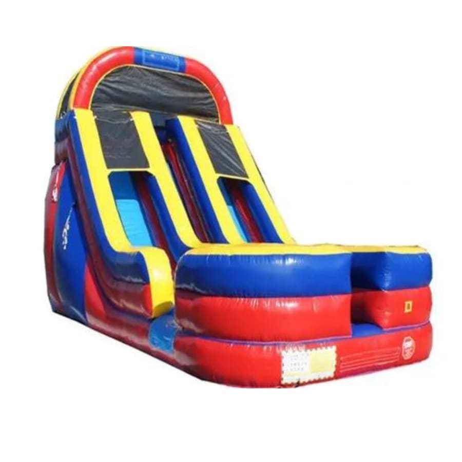 Book your thrilling and adrenaline-pumping 18' high Double Trouble Waterslide! This massive 18' double waterslide is perfect for thrill-seekers of all ages! Double the Trouble...Double the Fun!!