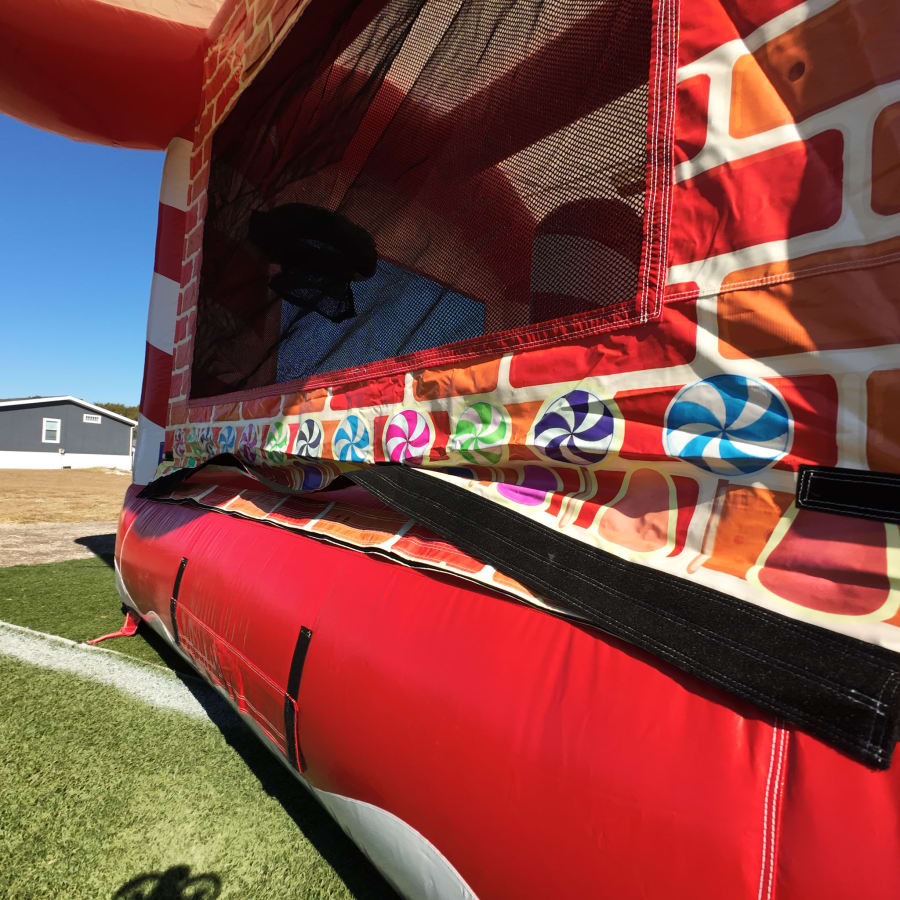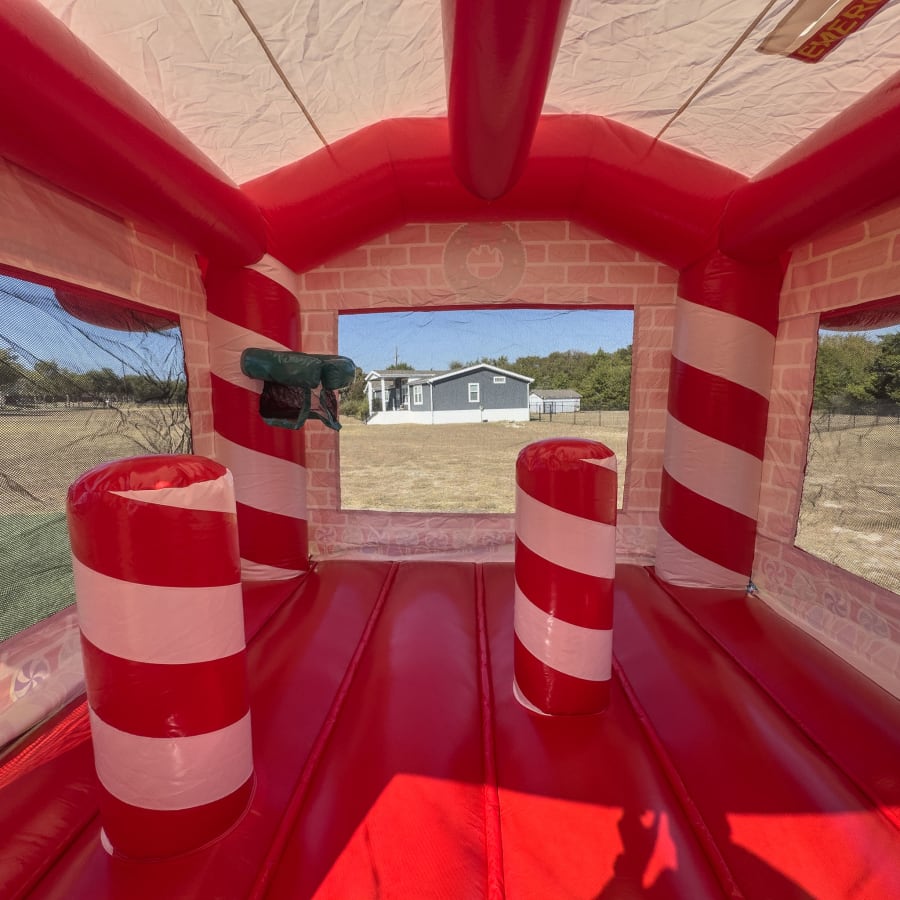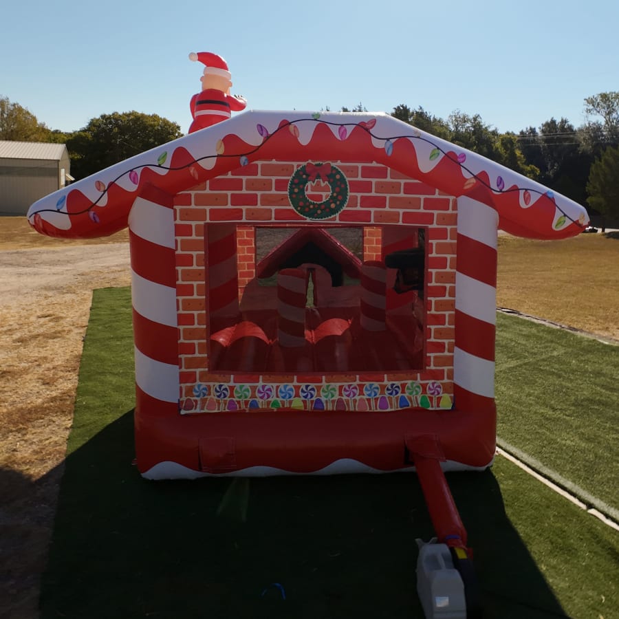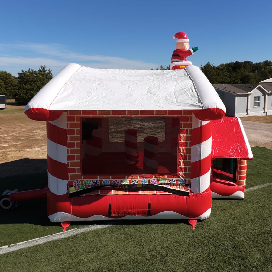 Bring instant holiday magic with the North Pole Playhouse inflatable jumper. This Christmas-themed jumper features a gingerbread house façade, bright candy cane accents, and a jolly Santa waving from the rooftop. At 15’ L x 14’ W x 19’ H, the North Pole Playhouse offers a roomy, safe play area for kids to bounce, laugh, and celebrate. Perfect for holiday parties, winter festivals, school events, and church gatherings. ✨
