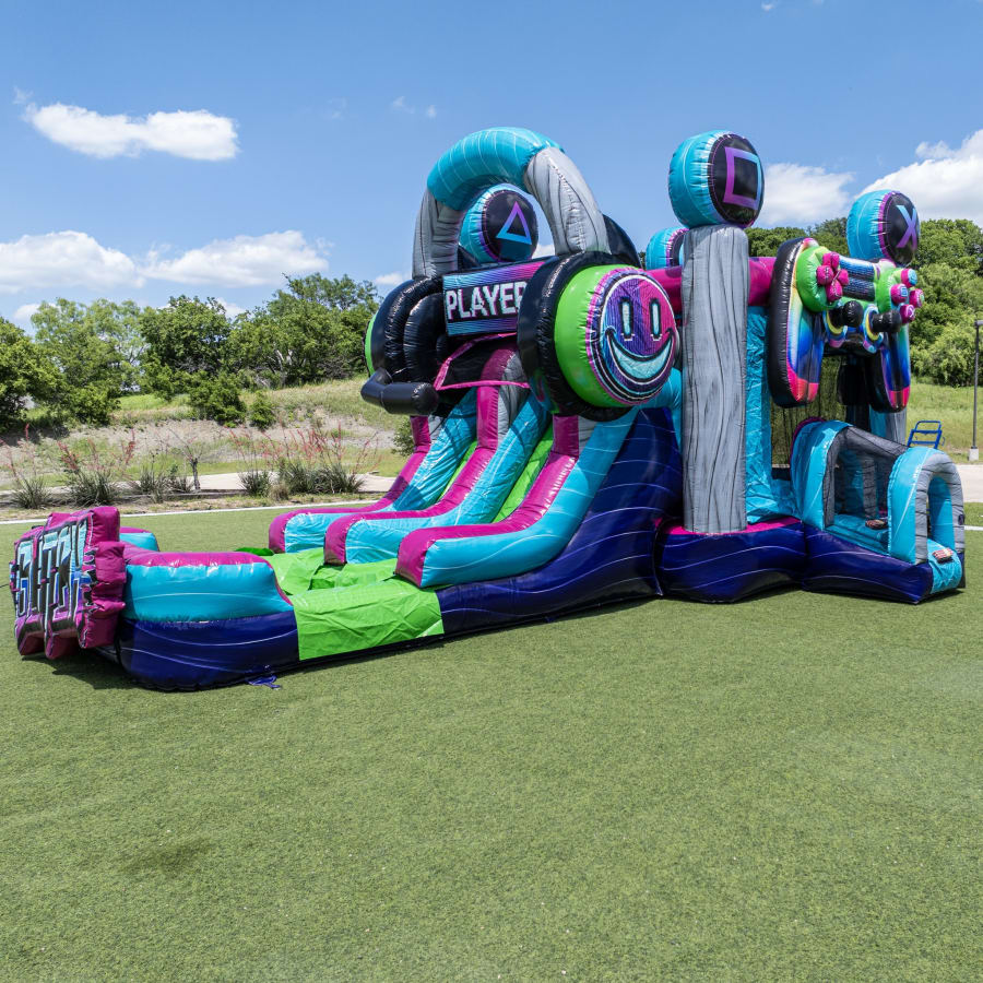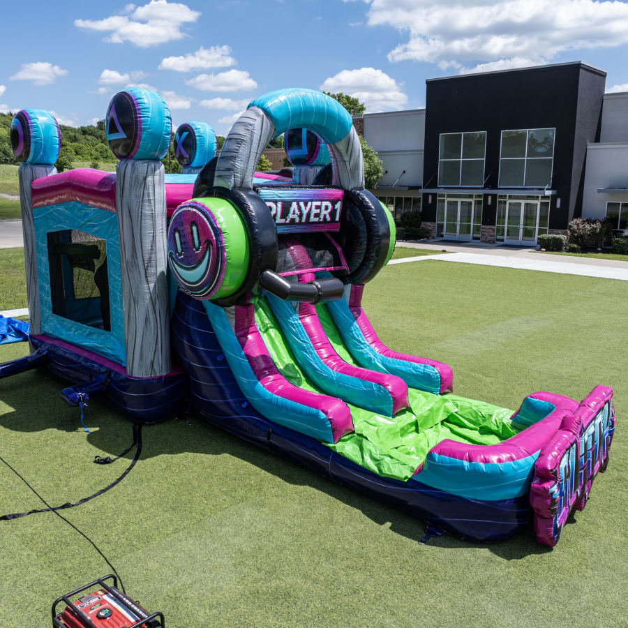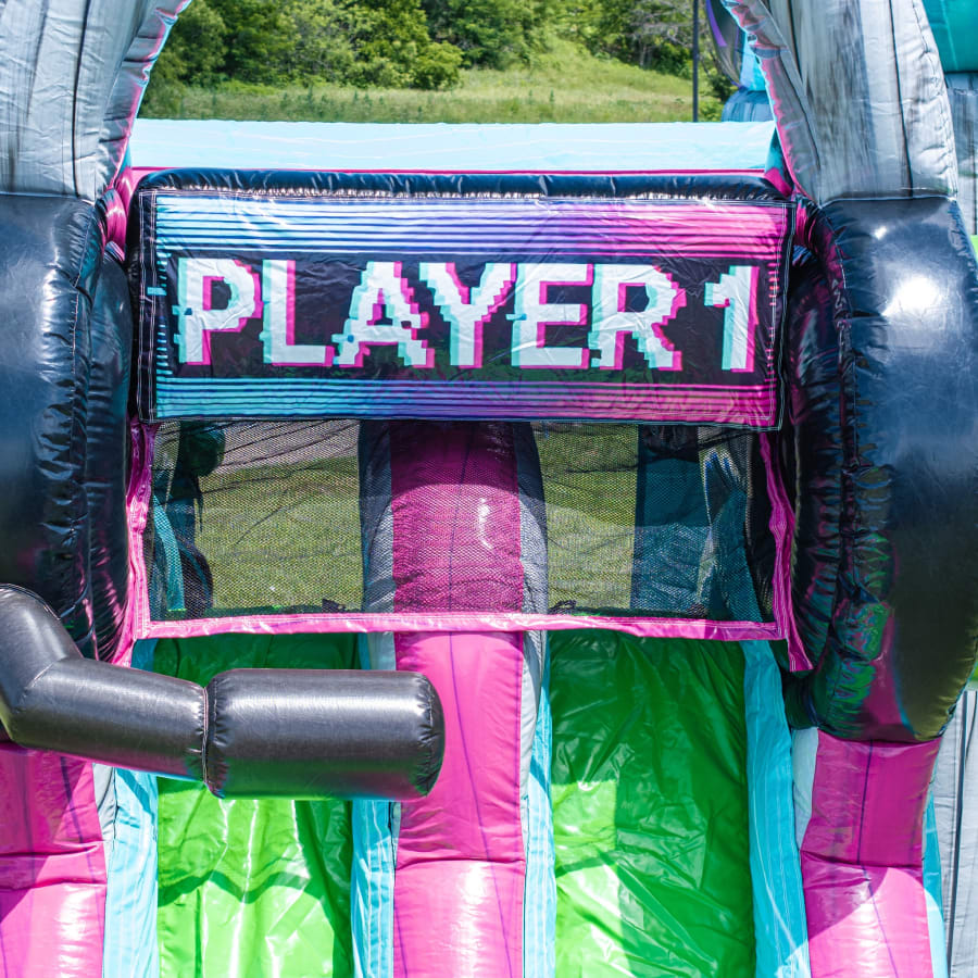 Bring the thrills of gaming and the excitement of bouncing together with The Glitch Combo (Wet/Dry)! This newly designed gaming-themed inflatable is a showstopper for any event, featuring vibrant colors and cool graphics inspired by your favorite video games. Whether you're planning a backyard birthday, school fundraiser, or community event, The Glitch Combo delivers non-stop fun that kids and gamers alike will love.