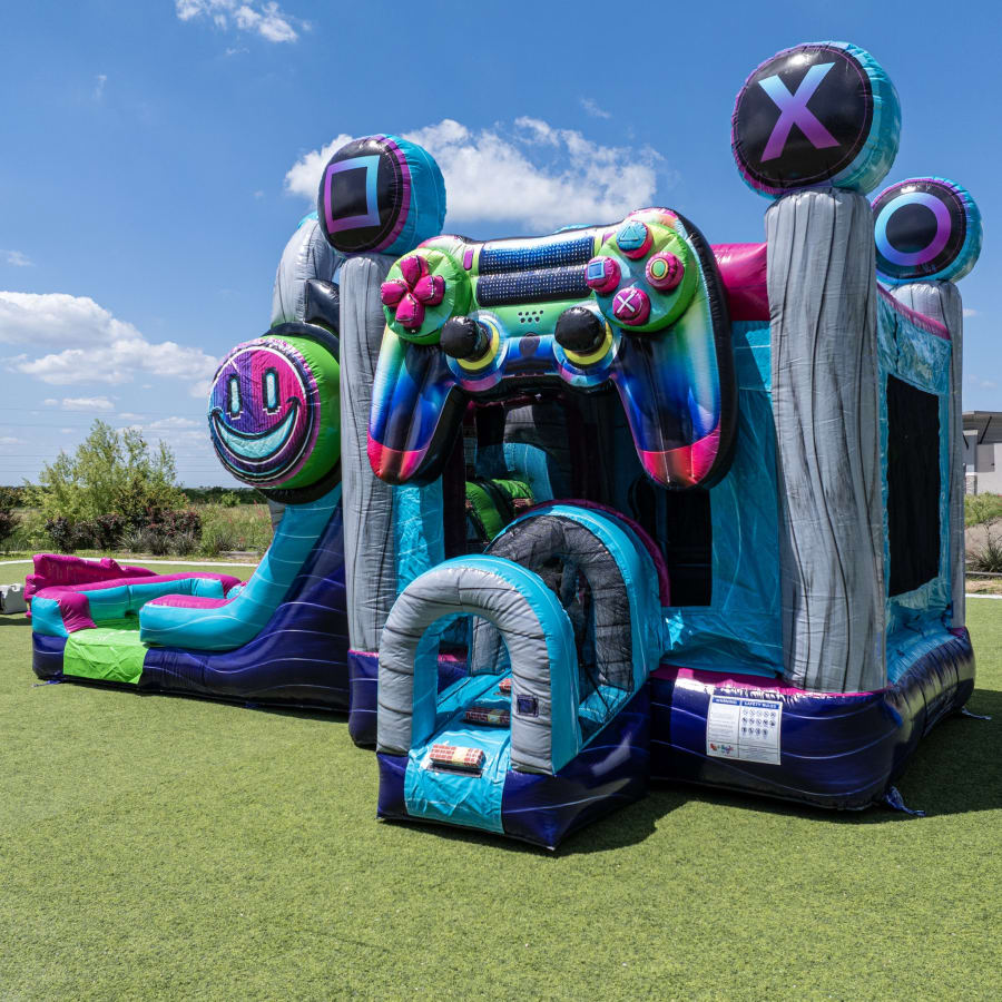 If your child dreams in pixels and loves all things gaming, The Glitch Combo brings their world to life! Its eye-catching design and interactive features make it the ultimate centerpiece for any celebration. Let imaginations soar as kids conquer slides, bounce with friends, and relax in their own gamer’s chair.
