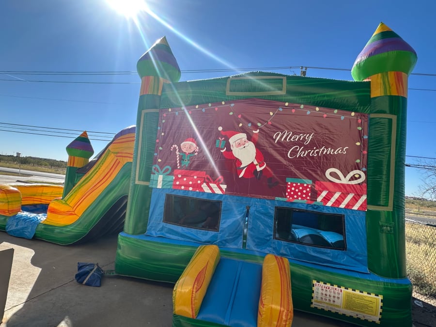 Deliver holiday excitement with our Christmas-themed Jumper Combo. This package combines a colorful jumper and a thrilling 2 lane slide. It’s perfect for school parties, church events, company picnics, and family gatherings across West Texas. Fast setup. Clean equipment. Safe play. โ๐